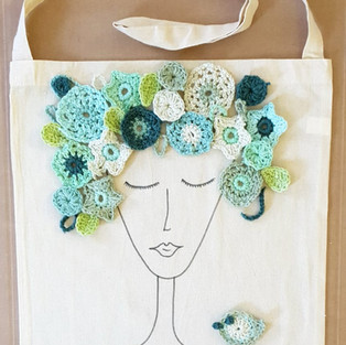 And this is the most cutest bag I have ever seen. I fell in love with it. It is so much girly. Just look at the cute outlines of the face on the Blooming Yarn Bag. Not to mention the little flowers and the little bird on her shoulder. Is this not very cute?